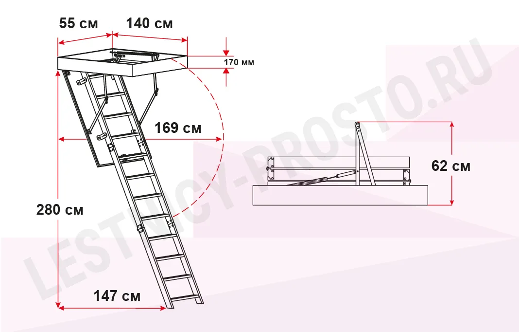 Указана цена исключительно на монтаж лестницы, любые дополнительные работы, связанные с несовершенством стен, углов, устранением дополнительных препятствий при установке лестницы - изменят стоимость работ.