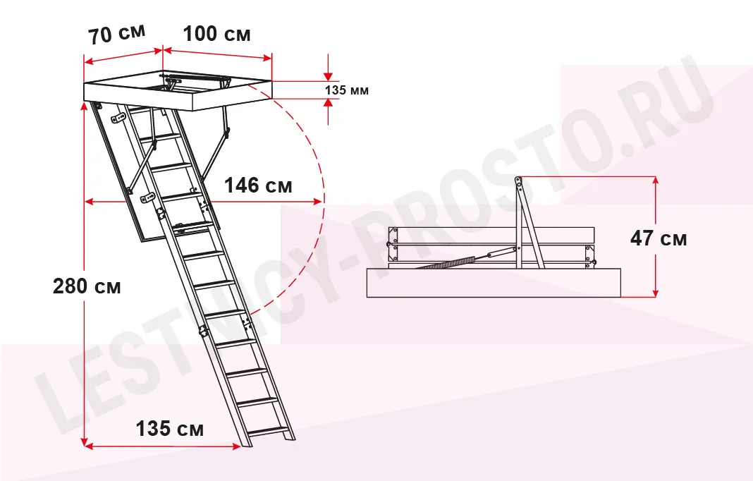 Чердачная лестница с люком OMAN COMPACT TERMO 70х100 см, h-280 см