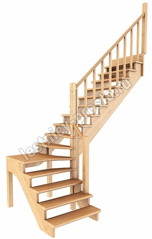 Ступени и поручень лестницы выполнены из бука, остальные элементы из сосны. Возможно изготовление данной модели полностью из бука. Базовый комплект включает в себя деревянные элементы лестницы и ограждения без какого-либо покрытия.