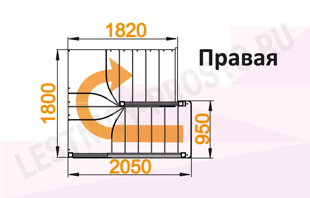 Ограждение по обеим сторонам (снизу до поворотной площадки)