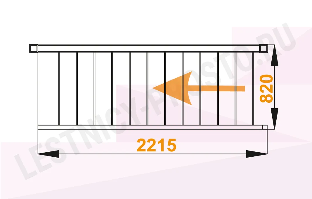 Схема лестницы с ограждением установленным слева