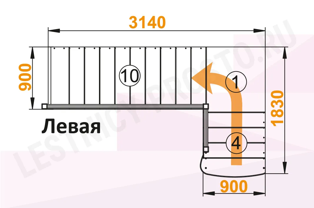 Форма лестницы Г-образная
