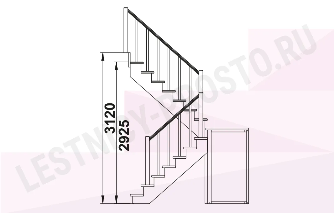 Обратите внимание! данная модель изготовлена из сосны эконом-класса, имеющей заметные синие/серые фрагменты, эта особенность не отражается на механических свойствах лестницы, но может оказаться видимой при покраске в светлые тона.