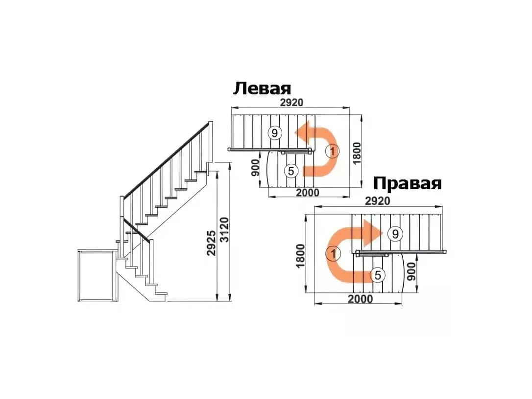 Высота лестницы: 2925 мм