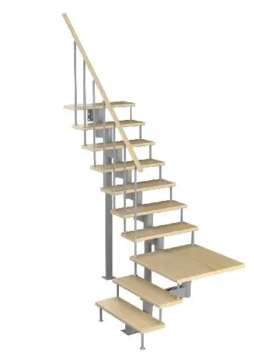 Базовый комплект включает в себя деревянные элементы лестницы и ограждения без какого-либо покрытия.