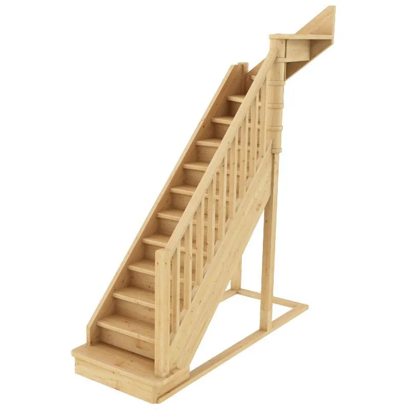 В производстве лестницы ЛС-215м под покраску используется сосна с небольшими изменениями цвета, что практически не влияет на ее механические свойства и почти незаметно при покраске в темные цвета. Базовый комплект включает в себя деревянные элементы лестницы с подступенками и ограждения без какого-либо покрытия.