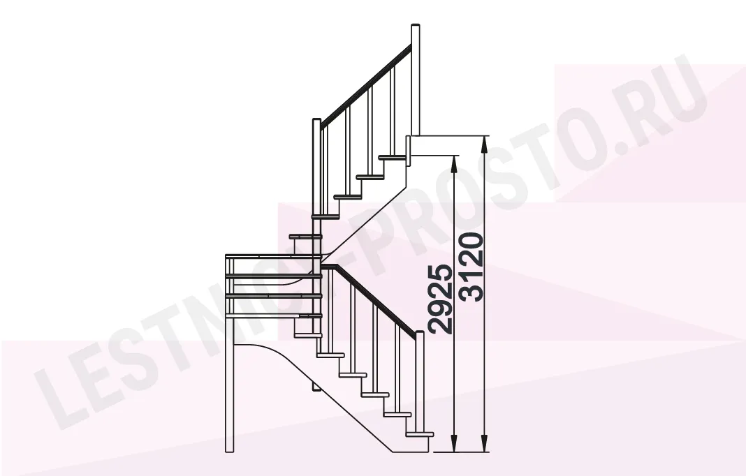 Высота лестницы 2925 - 3120 мм
