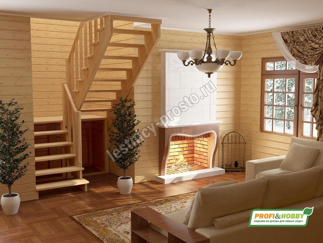 Материал: ясень (ступени и поручень), сосна (косоуры, столбы, балясины)