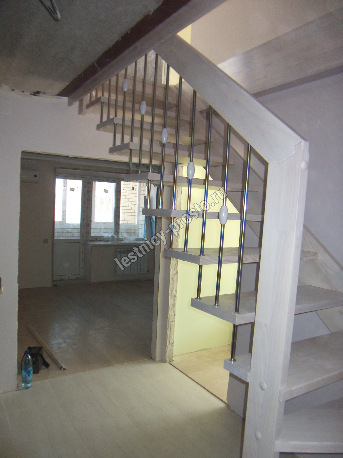 возможна комбинированная лестница: из сосны (ступени бук, ясень, дуб);