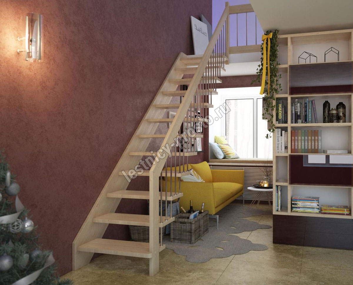 возможна комбинированная лестница: из сосны (ступени бук, ясень, дуб);