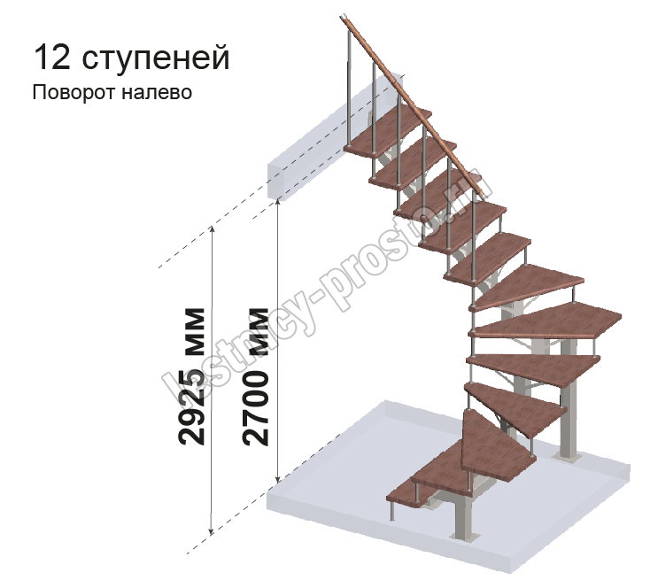 Комплект ограждений для П-образной лестницы PROSTO MONO из 12 ступеней.