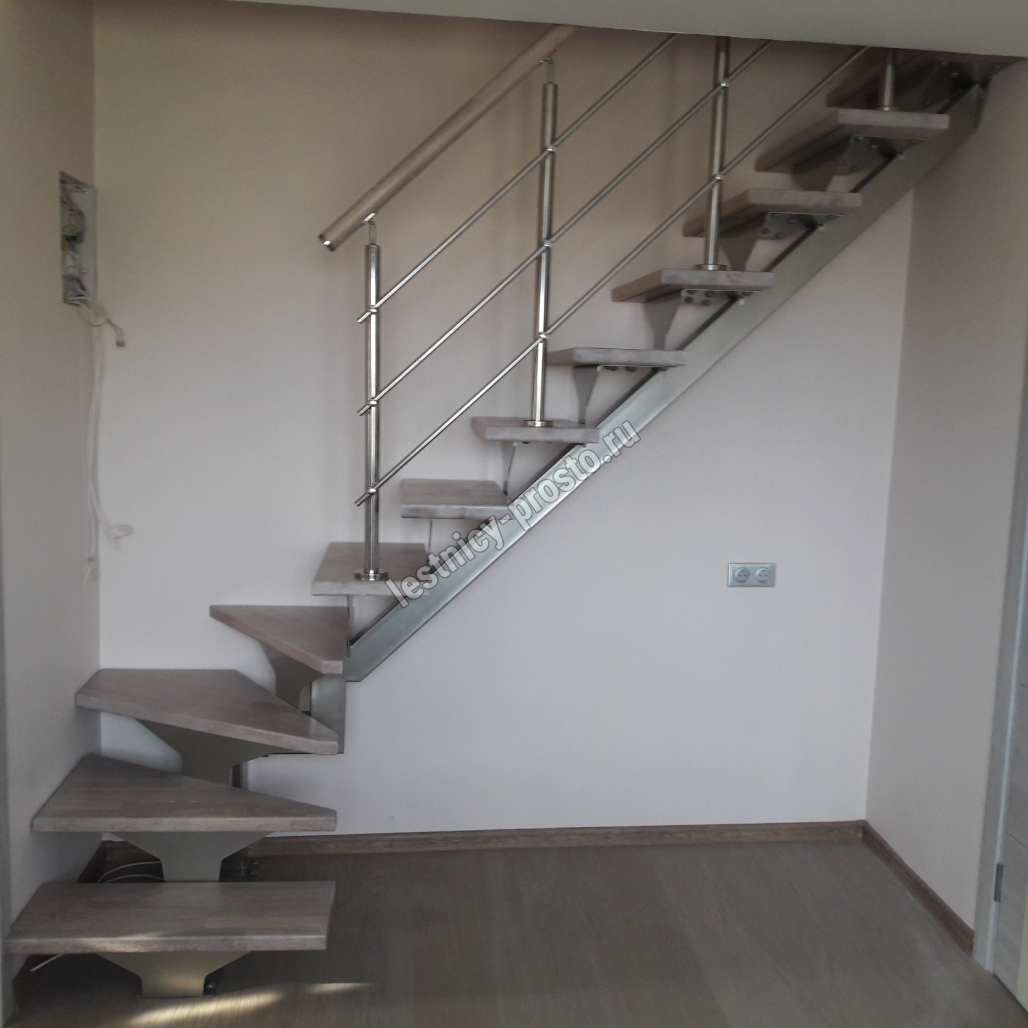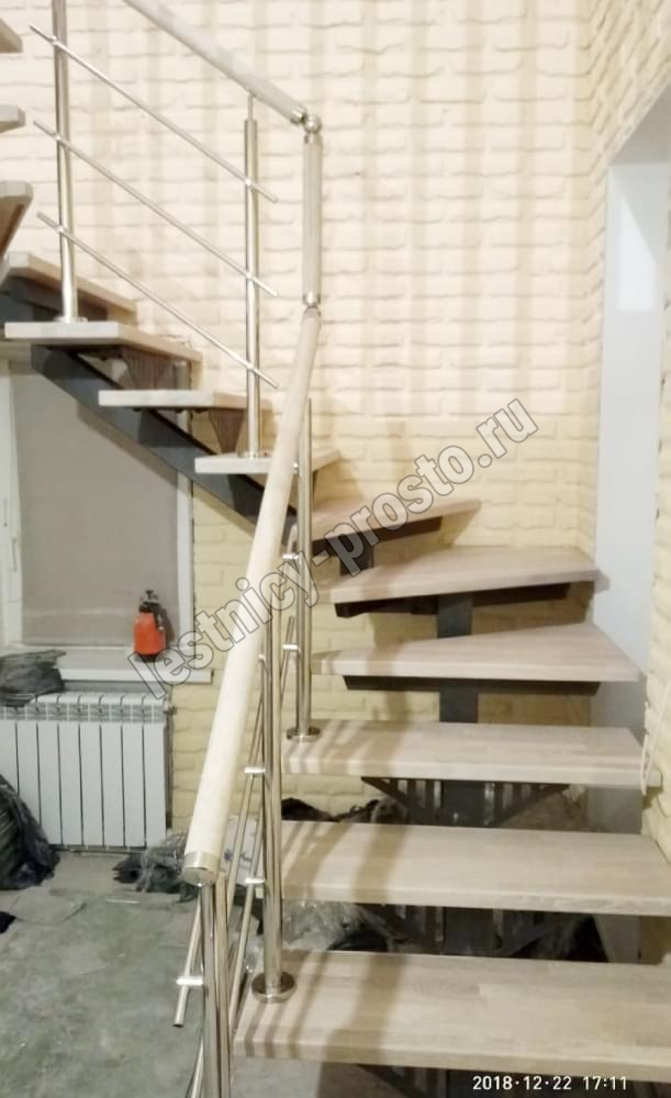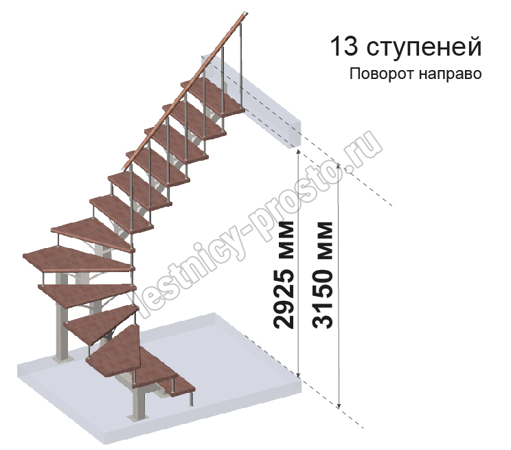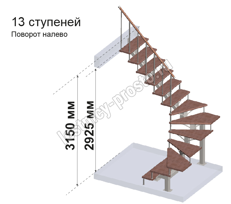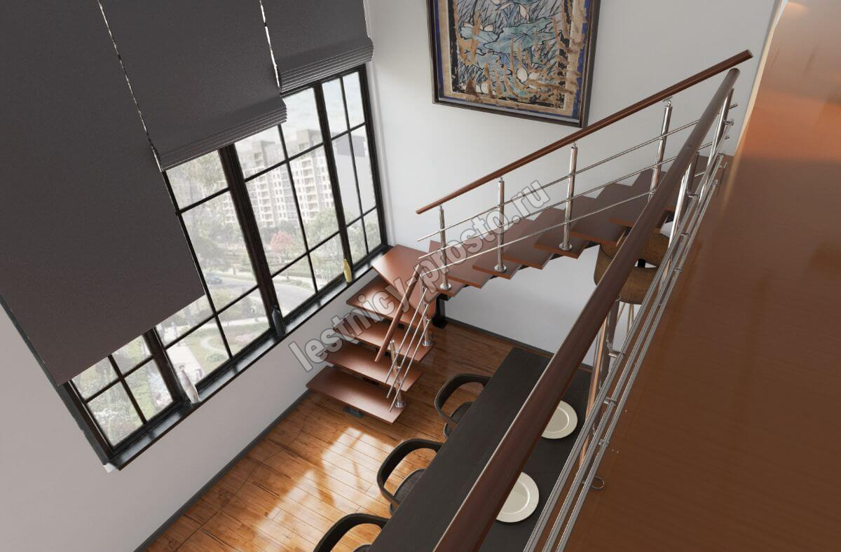 Комплект ограждений для П-образной лестницы PROSTO MONO из 13 ступеней.