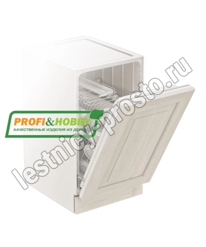 Фасад для посудомоечной машины изготовлен из 100% массива дерева, без шпона и без МДФ/ДСП.