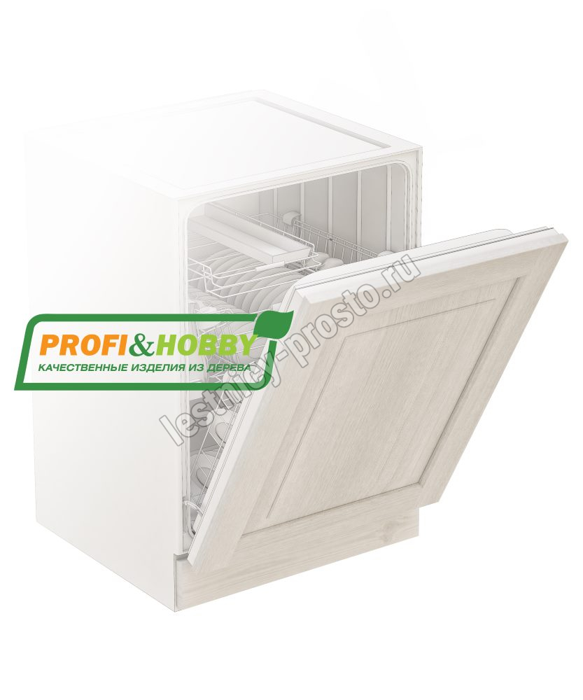 Фасад для посудомоечной машины изготовлен из 100% массива дерева, без шпона и без МДФ/ДСП.