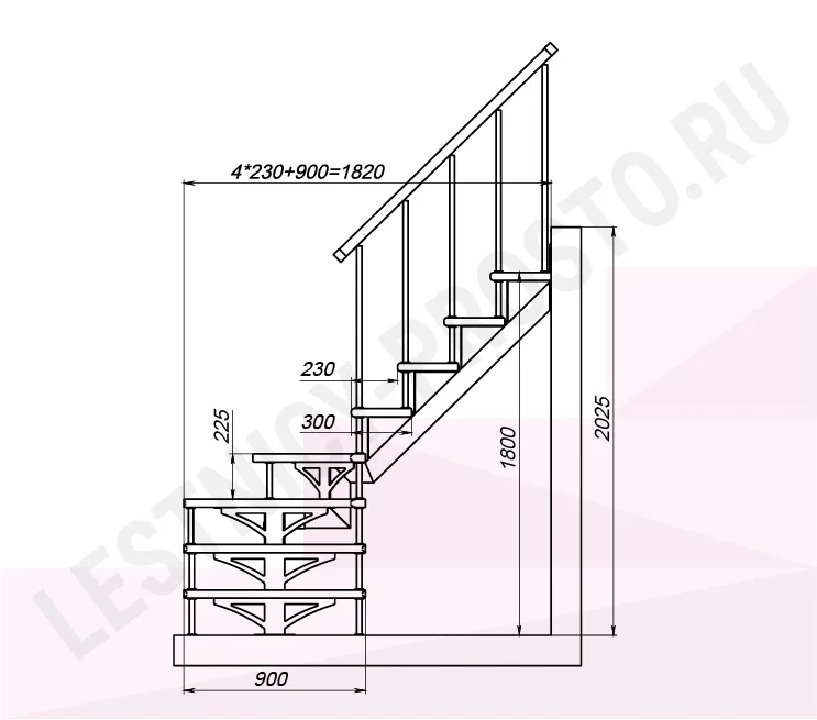 Лестница PROSTO MONO Г-образная h202.5 см, ступени бук