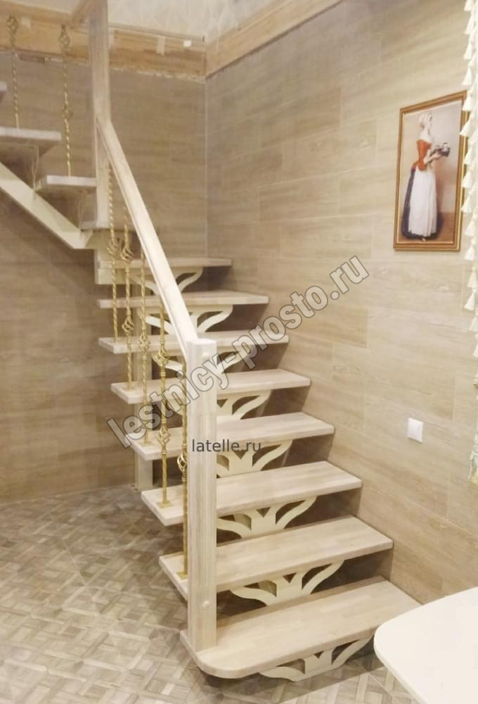 Лестница PROSTO MONO Г-образная h337.5 см, ступени лиственница