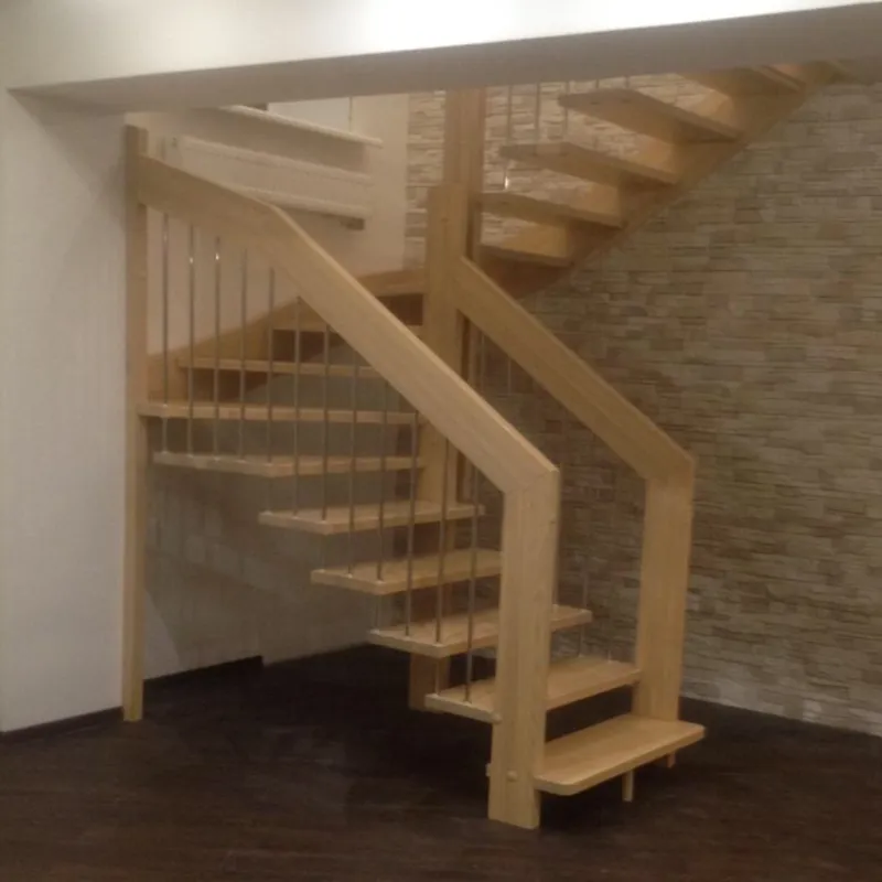 Ступени лестницы изготовлены из дерева категории А/В паркетной склейки без какого-либо покрытия.