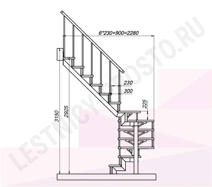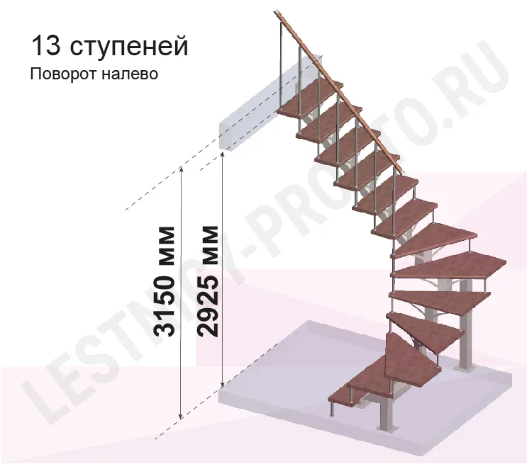 Под заказ возможно изготовление каркаса лестницы PROSTO MONO с поворотом начинающимся с любой ступени, а также, возможно реализовать поворот через площадку. Звоните нам по любым возникающим вопросам, мы поможем сориентироваться и сделать правильный выбор.