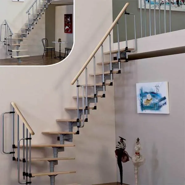 Алюминиевый поручень лестницы Joker 600 покрыт порошковой краской в цвет конструкции. Ступени изготовлены из берёзы и покрыты защитным износостойким фирменным лаком MINKA.