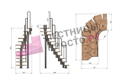 Лестница Prosto Urban Black гусиный шаг 600 мм, h216-312 см (12 ступеней), бук