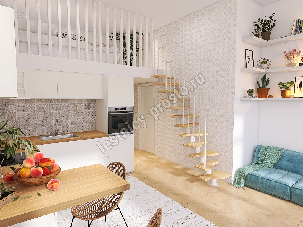 Лестница Prosto Urban White гусиный шаг 700 мм, h234-336 см (13 ступеней), бук