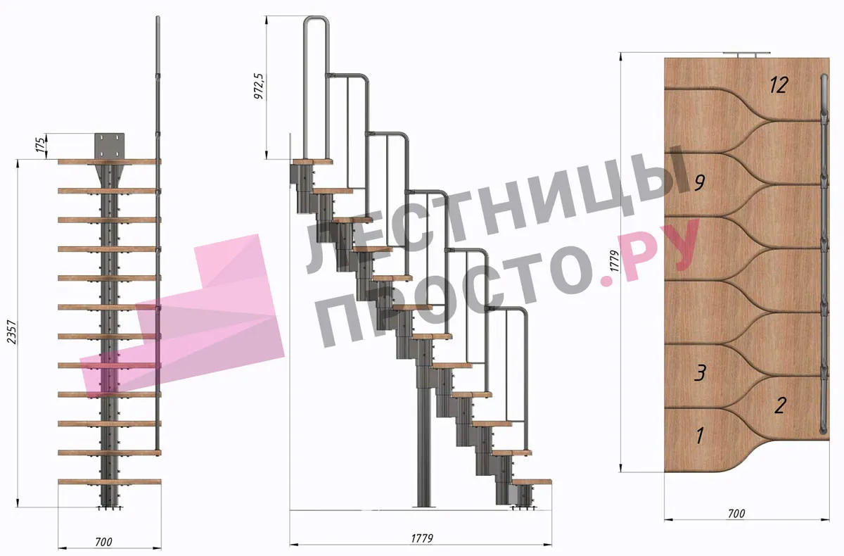 - Регулируемый по высоте в пределах 180-240 мм модуль. Большой диаметр и толщина металла деталей обеспечивают жесткость и прочность конструкции. Регулировка каждого модуля по высоте позволяет легко приспособить лестницу под ваше помещение.