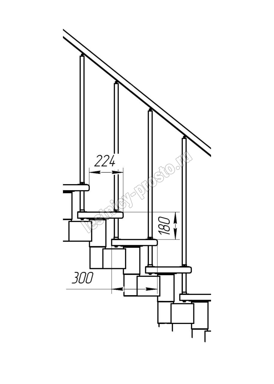 Модульная лестница Фаворит 180 2160-2280, Черный, Сосна, Нержавеющая сталь