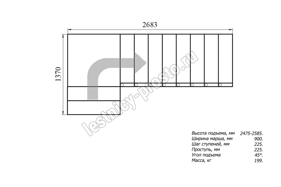 Модульная лестница Статус 225 2475-2585, Серый, Сосна, Крашеная