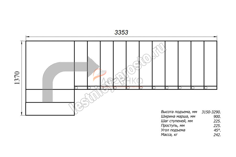 Модульная лестница Статус 225 3150-3290, Серый, Бук, Нержавеющая сталь