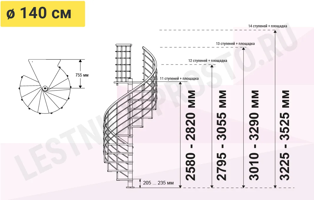 Винтовая лестница Montreal STYLE чёрная, d140 см, h258-282 см |