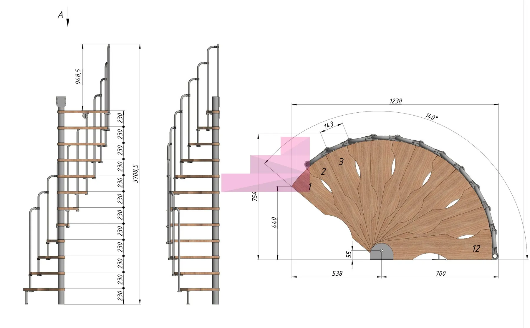 Ступени, элементы каркаса, ограждение, необходимая фурнитура и крепёж.