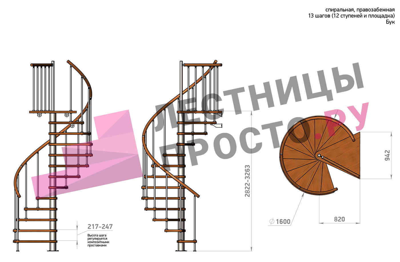 Винтовая лестница Prosto Spiral Black D160см, h282.2-326,3 см, бук