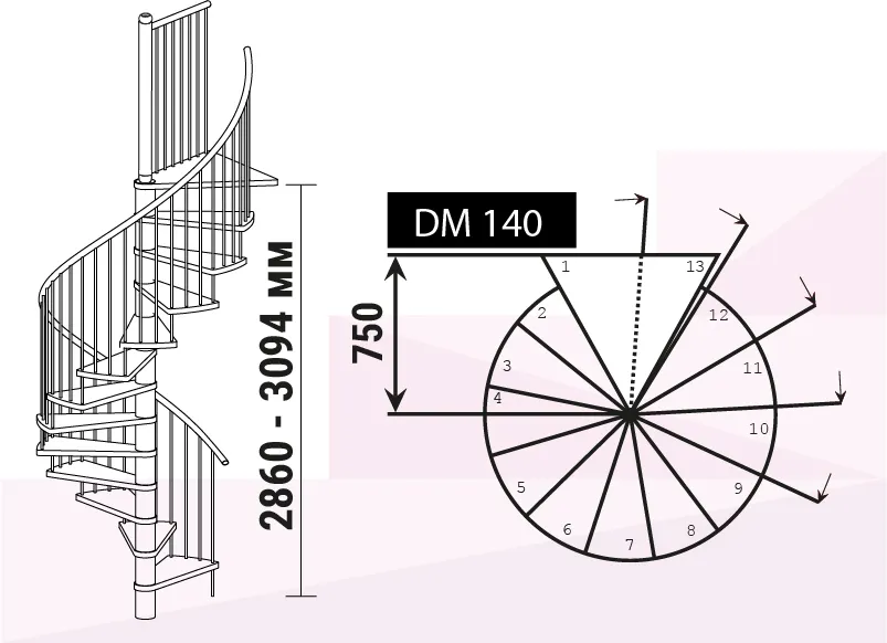 Винтовая лестница SPIRAL DECOR d140 см, серебро, бук лакированный