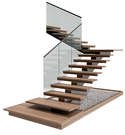 Лестница на центральном каркасе с двумя площадками и ажурными подступенками ЛП 704