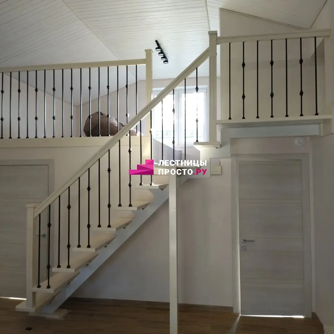 Лестница на центральном каркасе с коваными балясинами ЛП 703
